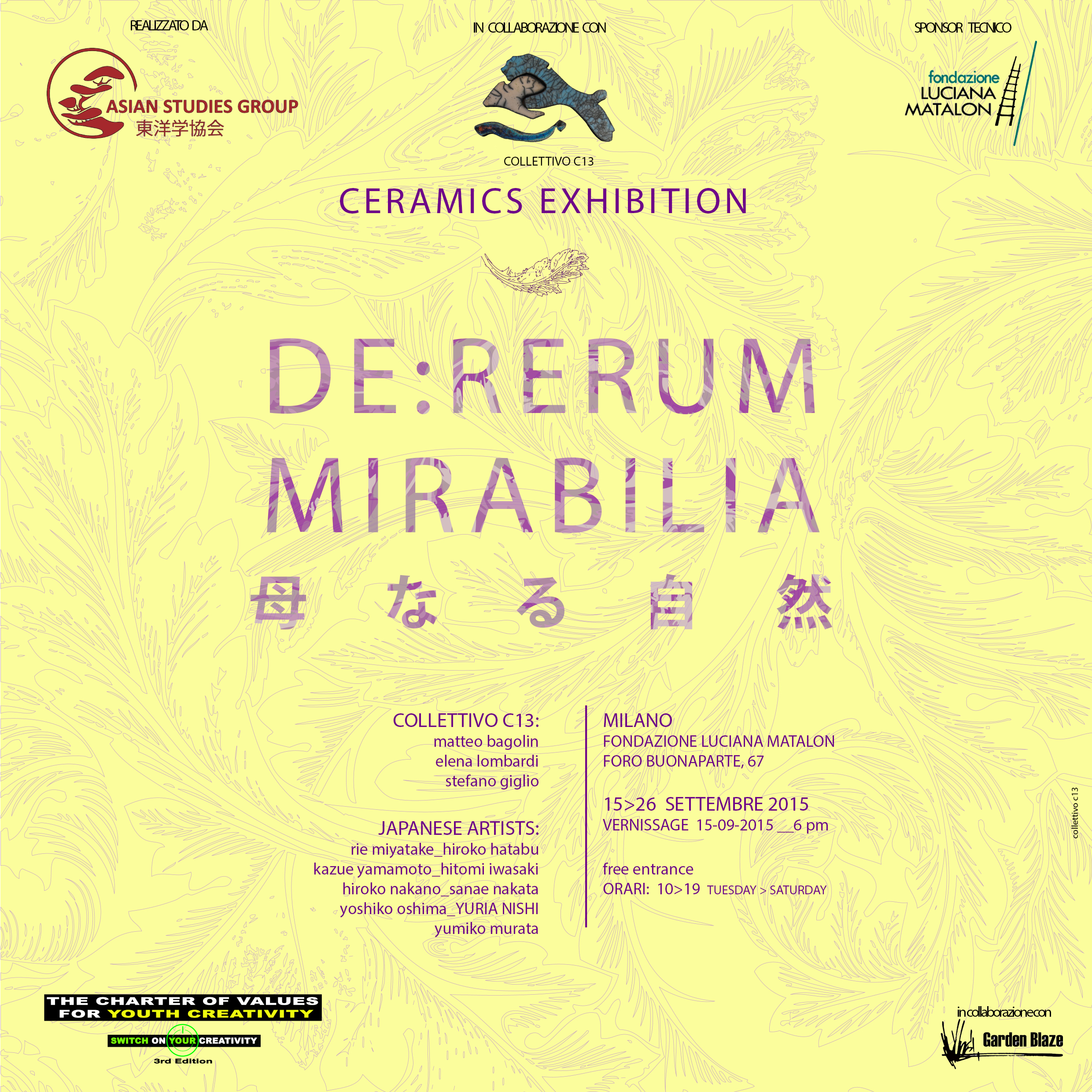 Il nostro studio da sempre coinvolto in progetti che consolidano connubio di matrici analitico -creative diversificate atte a consolidare un dialogo interculturale e di sperimentazione accattivante, ha selezionato il contenuto e ha deciso di presentare il concept in anteprima in Italia, supportato nella produzione dal fondo per l’Arte e la Creatività messo a disposizione dal 2014 da Asian Studies Group (Cultura al Cubo: creative, cultural, cool) e grazie alla partnership con Fondazione Luciana Matalon sponsor della serata, De Rerum Mirabilia diviene prima espositiva a Milano con la diretta partecipazione e presenza al vernissage di nove ceramisti giapponesi.